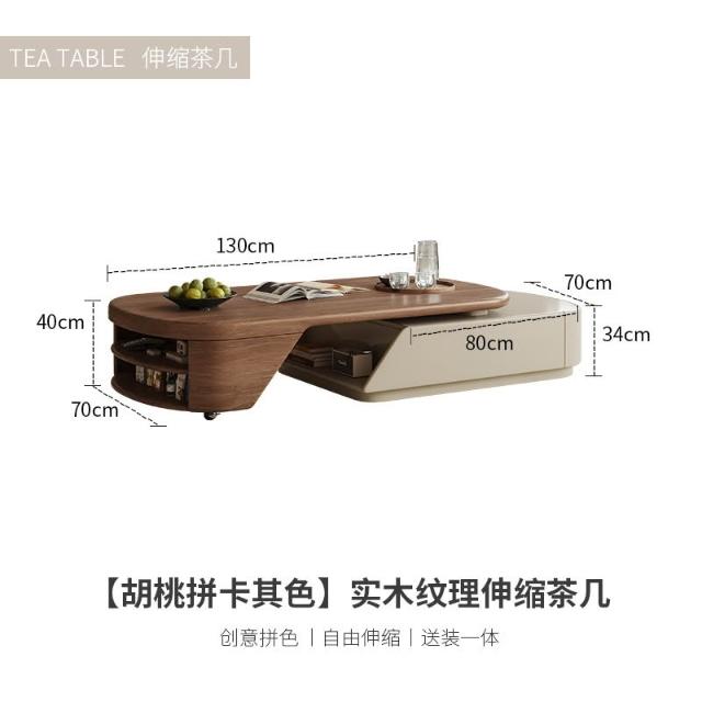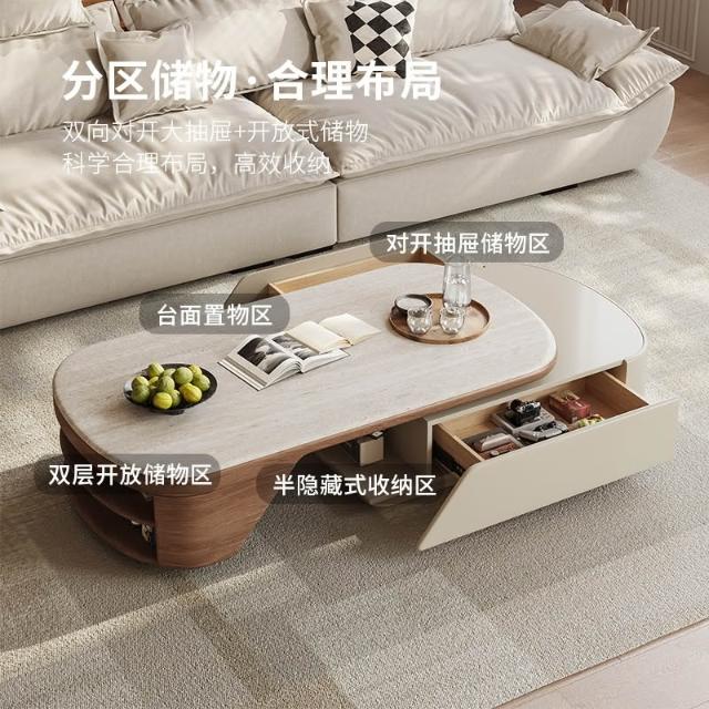 岩板中古風設計師胡桃木茶几客廳家用小戶型輕奢高級感極簡奶油風