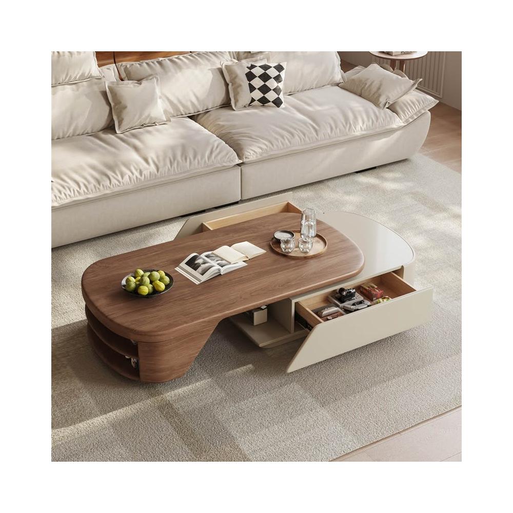 岩板中古風設計師胡桃木茶几客廳家用小戶型輕奢高級感極簡奶油風