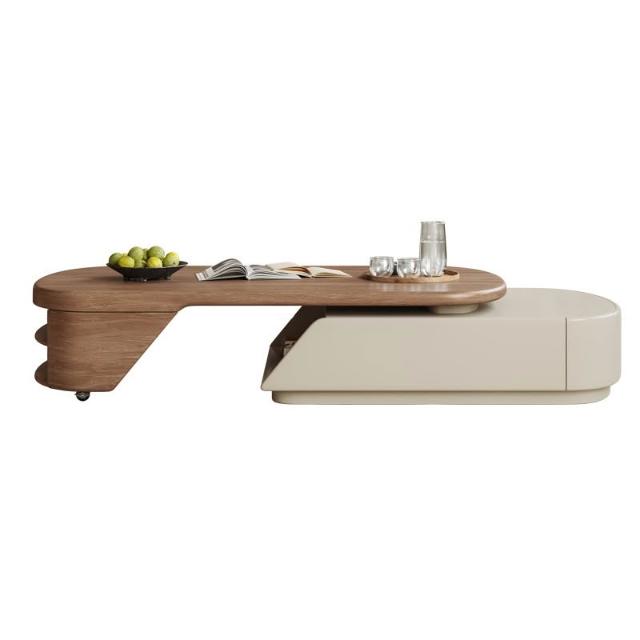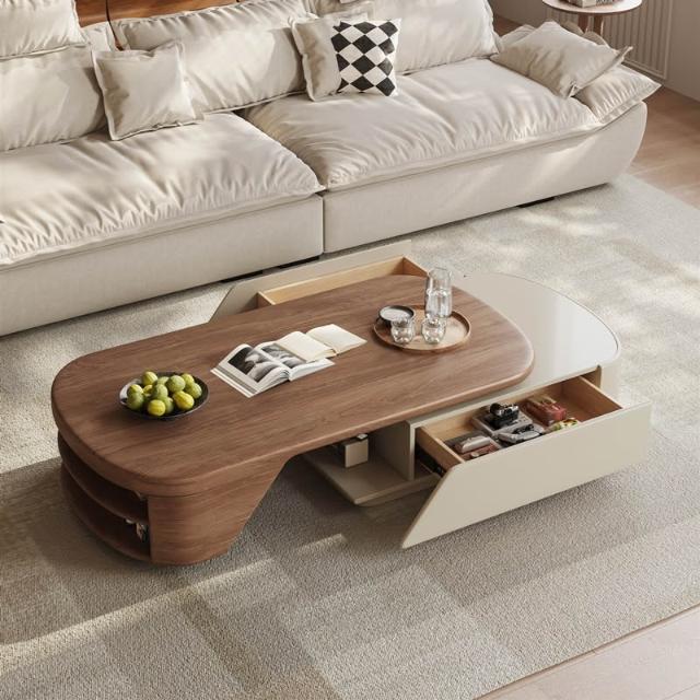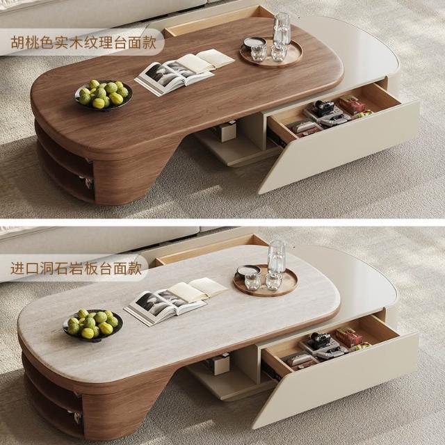 岩板中古風設計師胡桃木茶几客廳家用小戶型輕奢高級感極簡奶油風