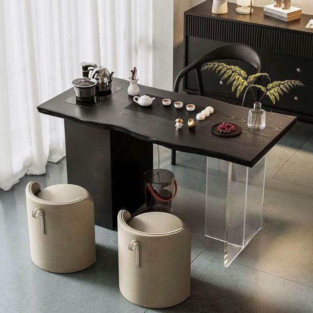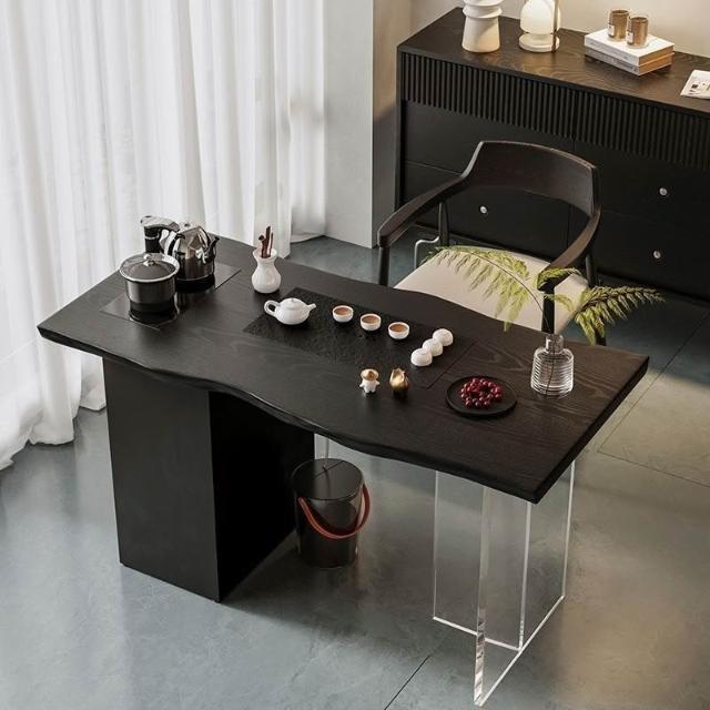 侘寂風實木茶桌整板不規則陽臺泡茶臺茶盤一體現代簡約家用茶桌椅