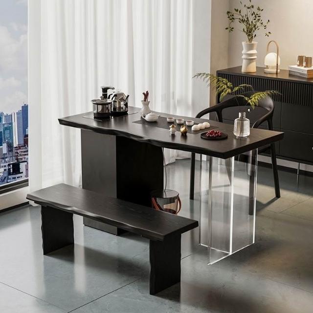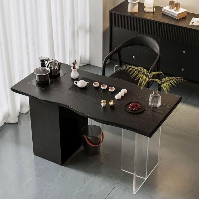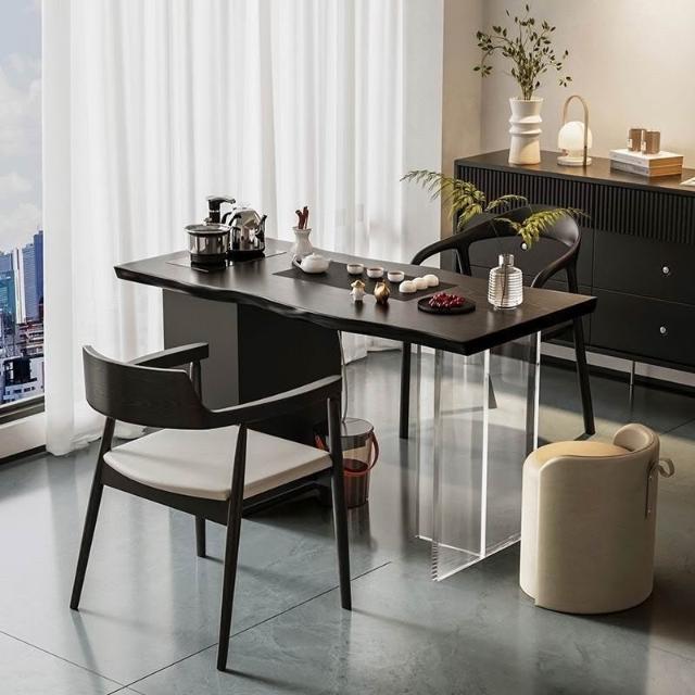 侘寂風實木茶桌整板不規則陽臺泡茶臺茶盤一體現代簡約家用茶桌椅