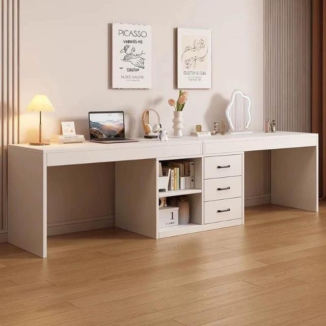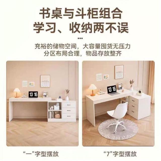 電腦桌家用雙人書桌書架一體桌辦公桌轉角寫字桌小戶型簡約梳粧檯