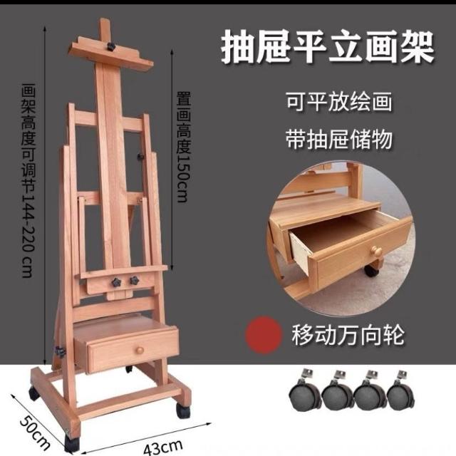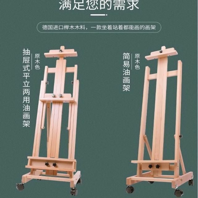 置畫高度可調節 櫸木制平立畫架專業油畫架素描畫架畫板油畫折疊收納帶輪子畫室用