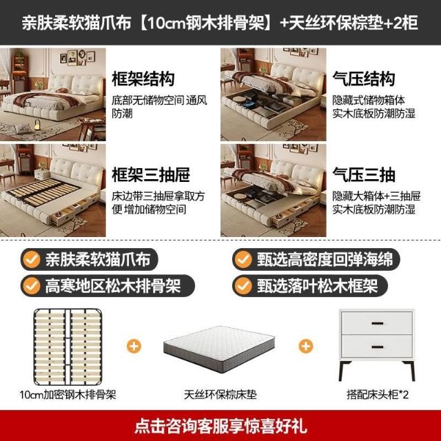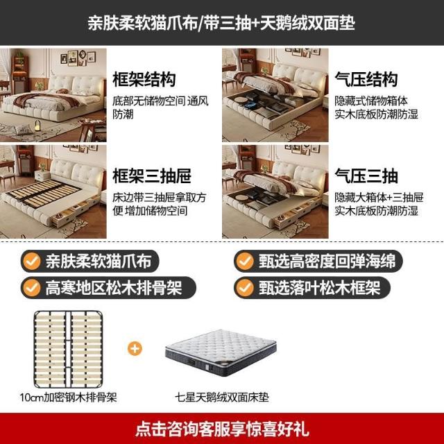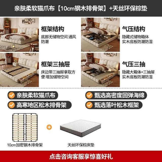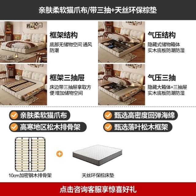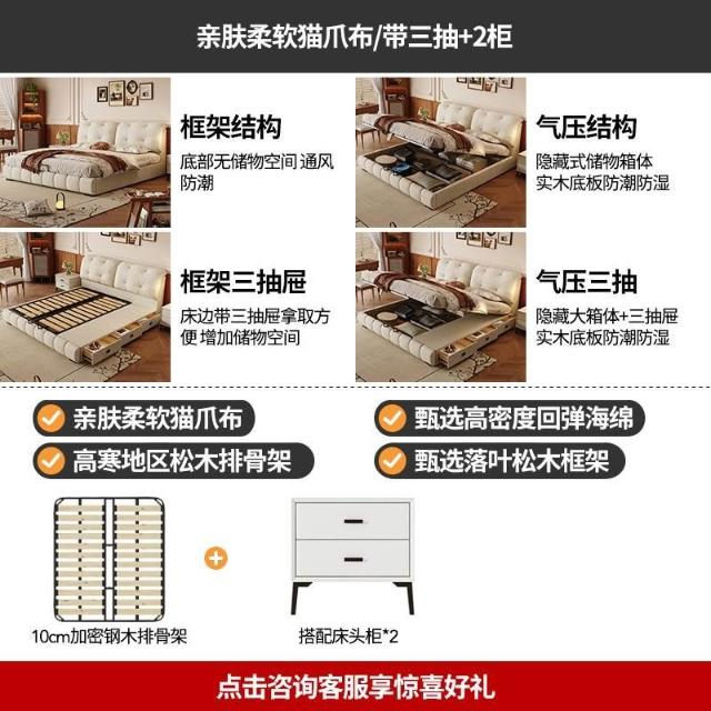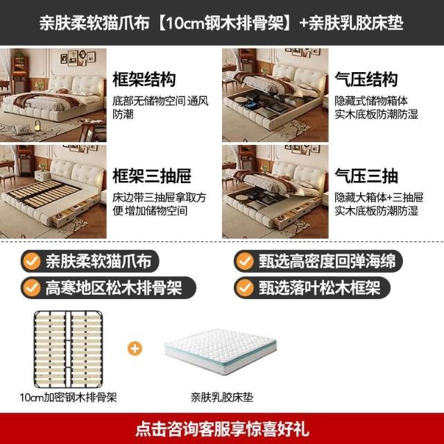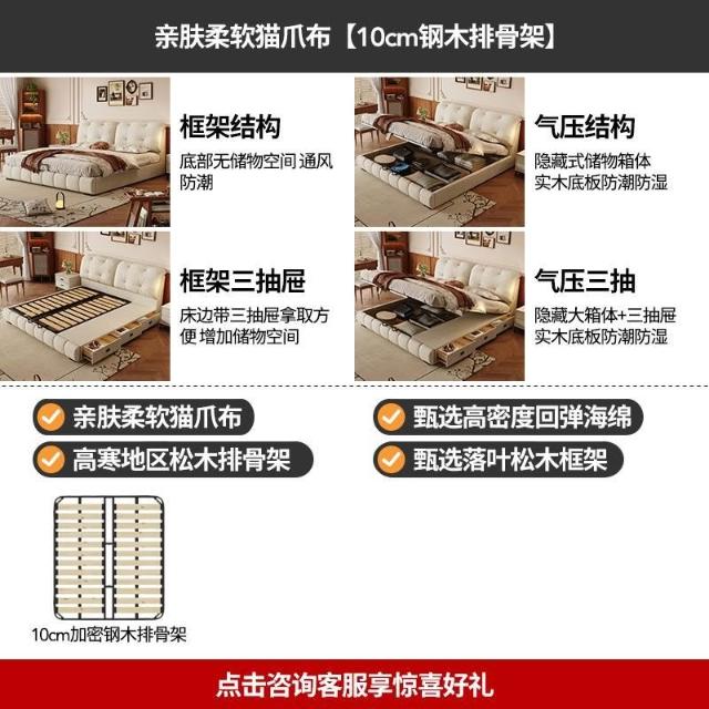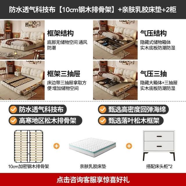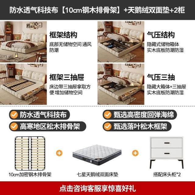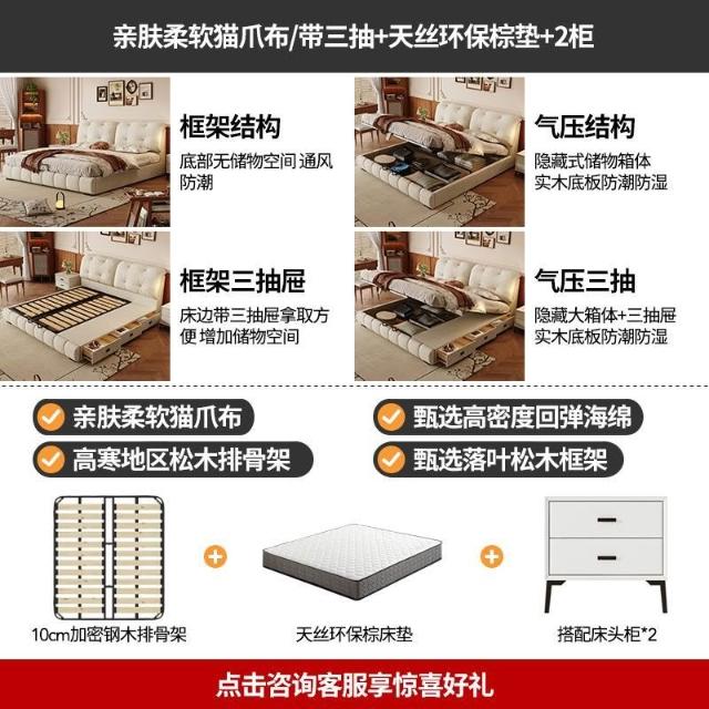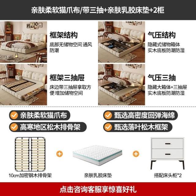 奶油風雲朵泡芙真皮床現代簡約主臥婚床雙人軟包儲物大床