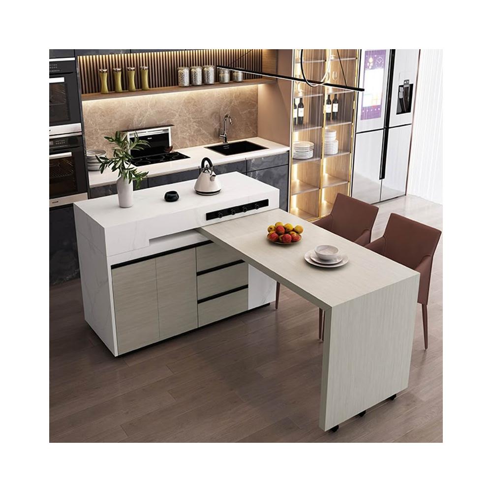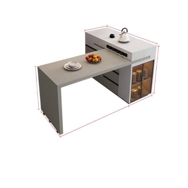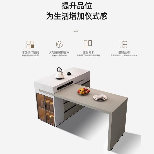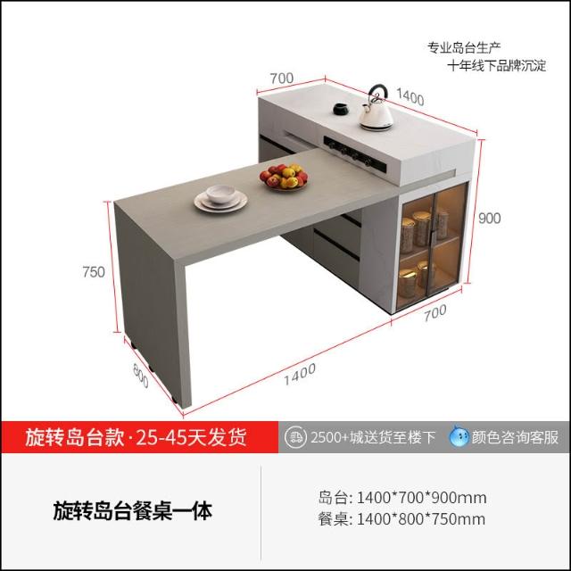 岩板中島臺餐桌一體旋轉伸縮小戶型開放式廚房簡約餐桌多功能島臺