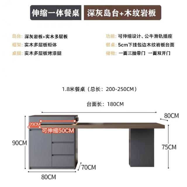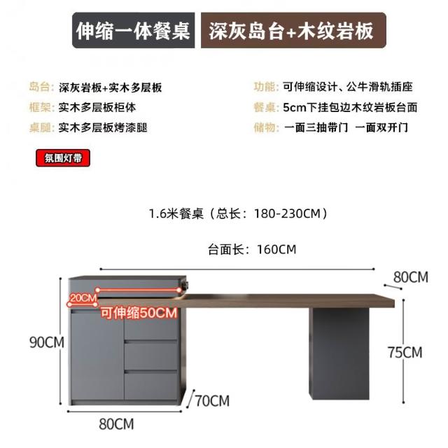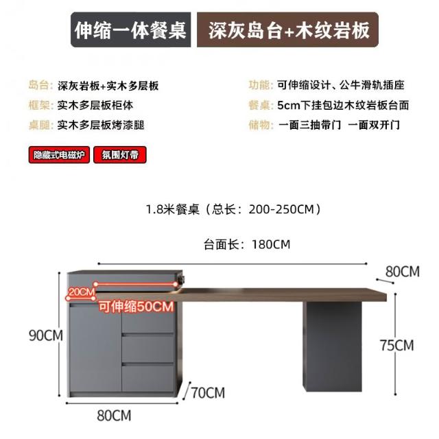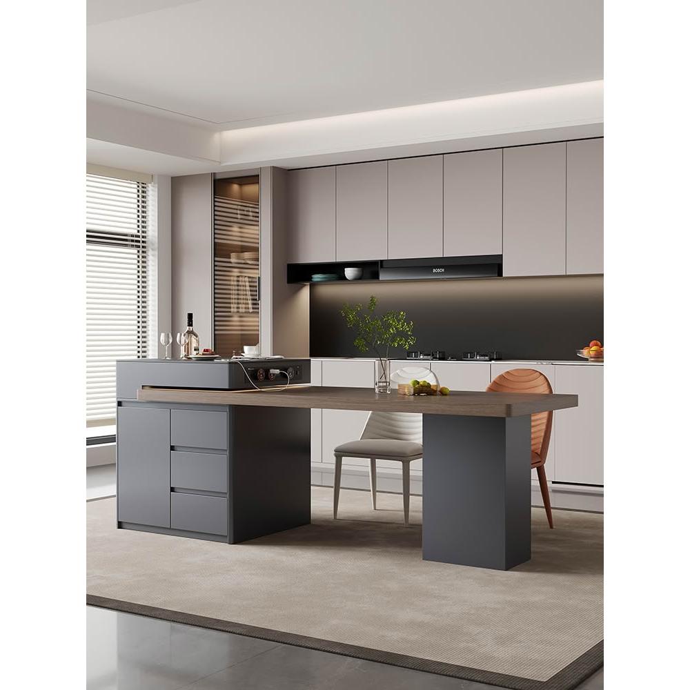 島臺餐桌一體可伸縮家用岩板意式極簡電動智能導臺高端中島餐廳