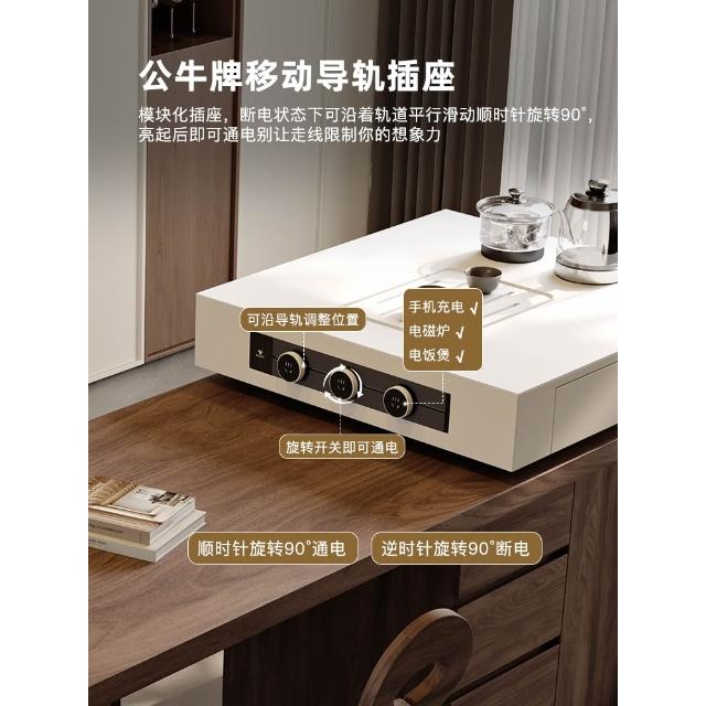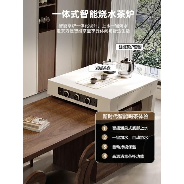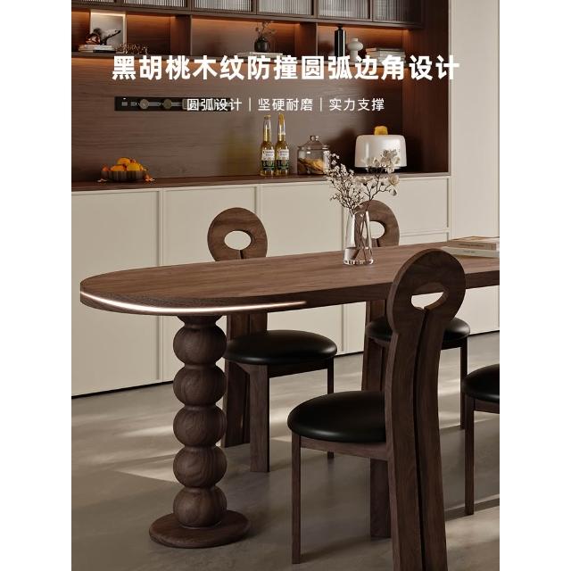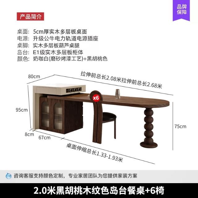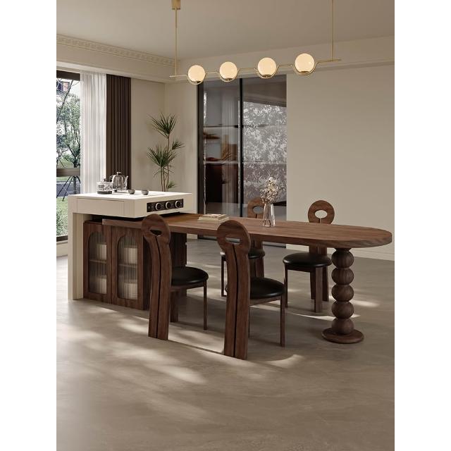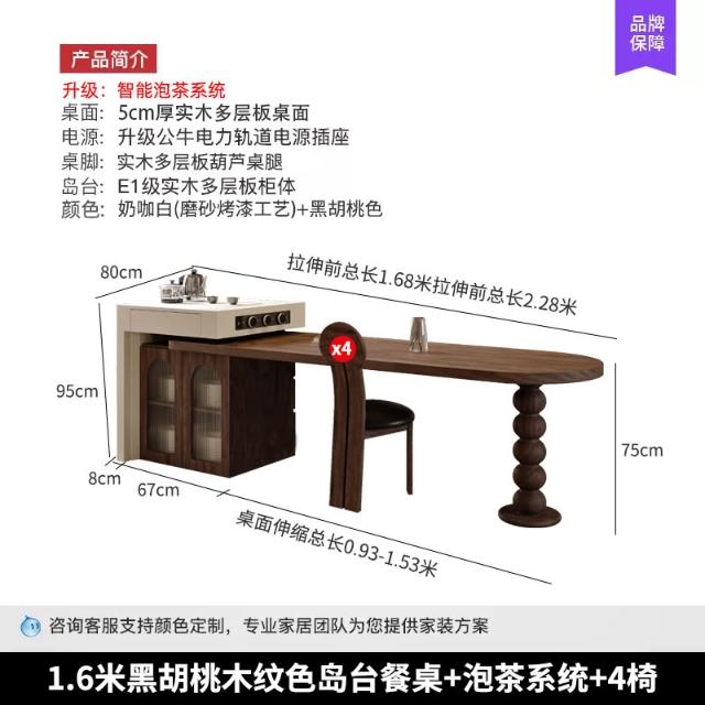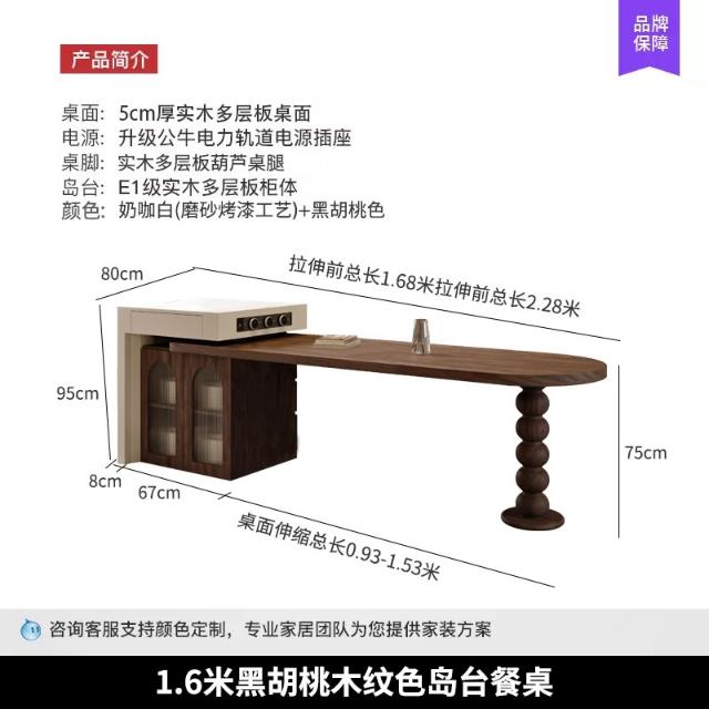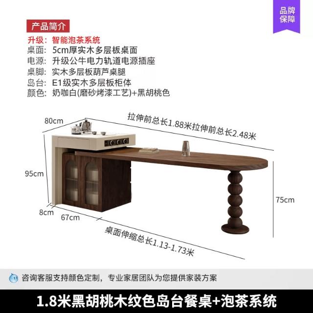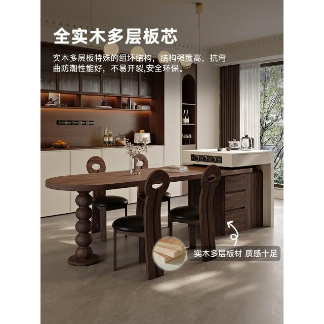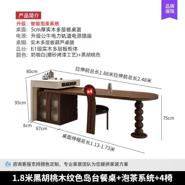 法式中古風黑胡桃木紋多功能伸縮島臺餐桌一體小戶型客廳餐廳中島