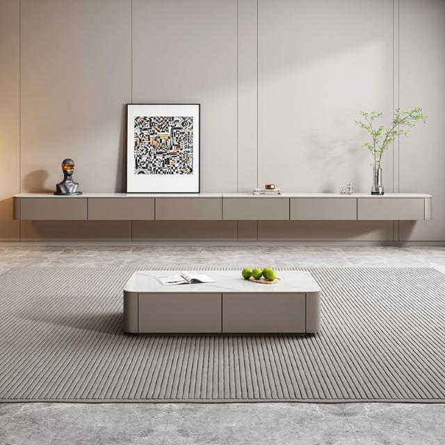 現代簡約實木懸空電視櫃客廳家用新款岩板電視吊櫃輕奢高級懸浮櫃