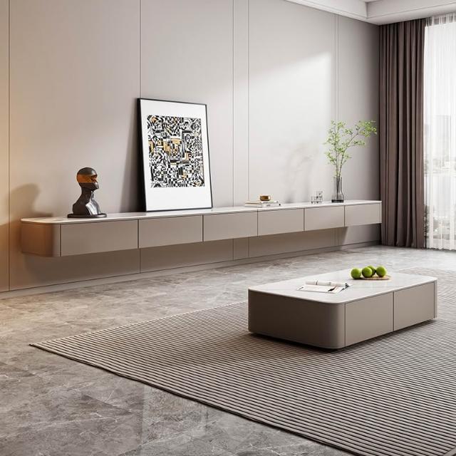 現代簡約實木懸空電視櫃客廳家用新款岩板電視吊櫃輕奢高級懸浮櫃