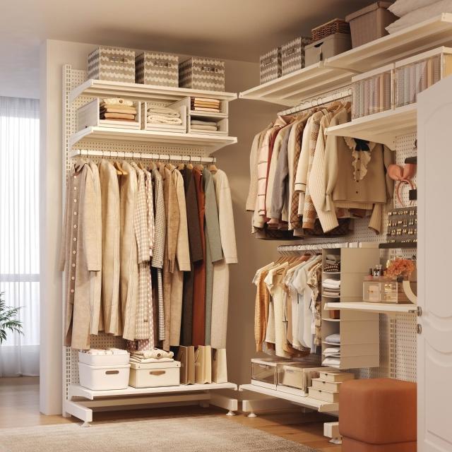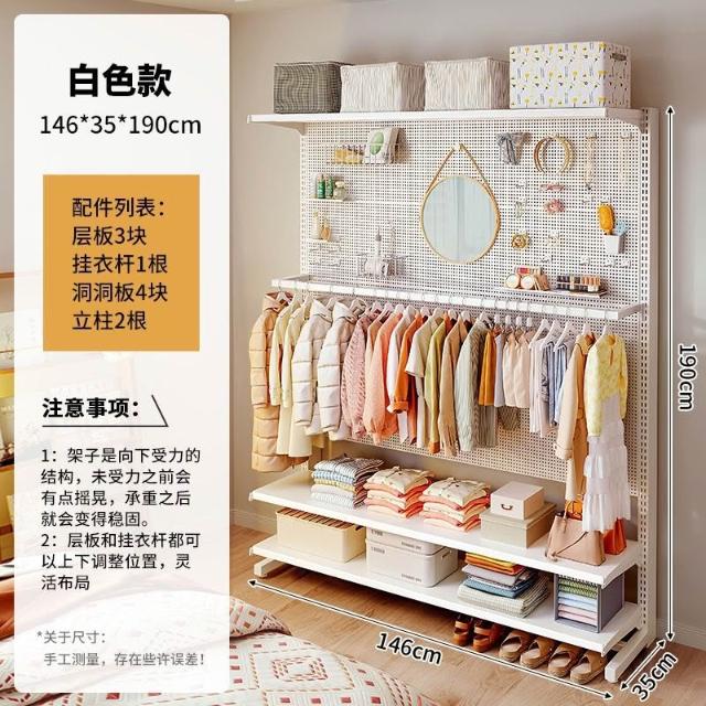 開放式衣櫃洞洞板衣帽架金屬置物架掛衣架一體臥室落地衣帽間架子
