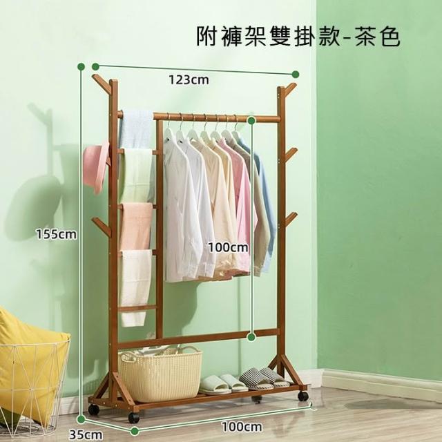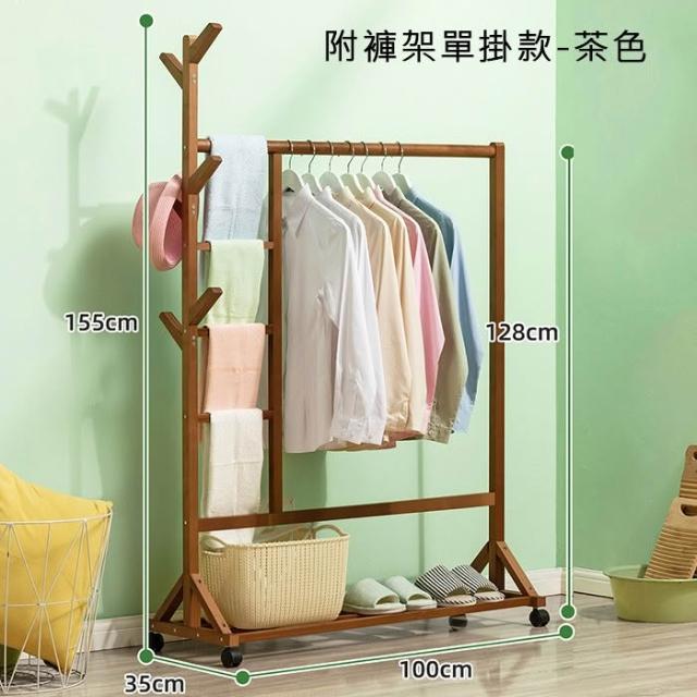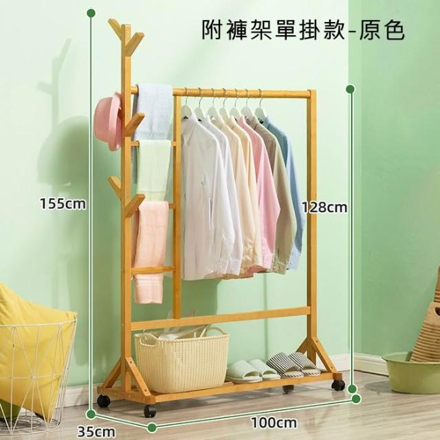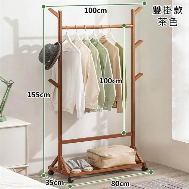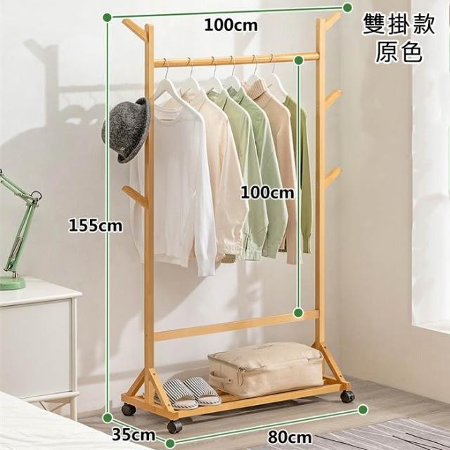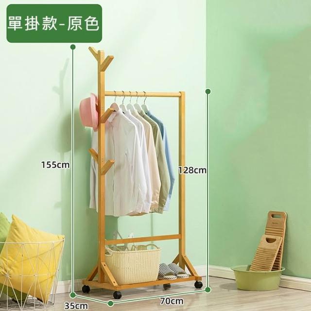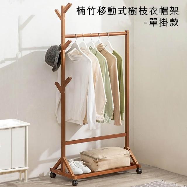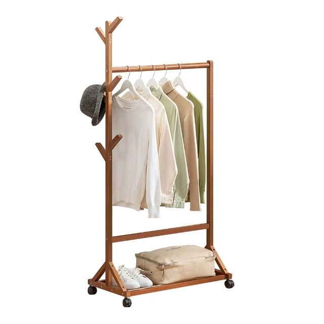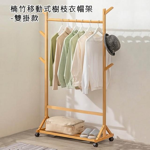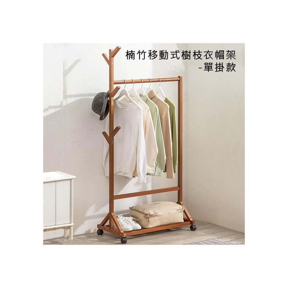 楠竹移動式樹枝衣帽架 木質掛衣架附滾輪 衣帽架 衣物收納 YV9949_52 快樂生活網