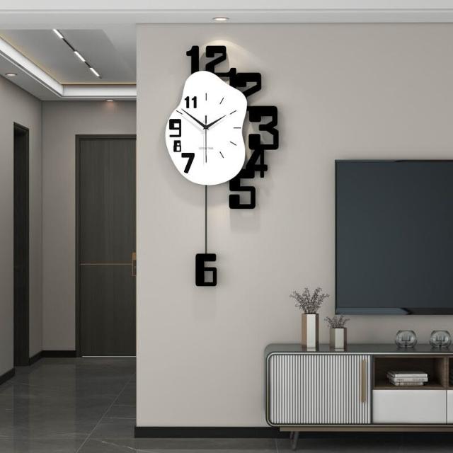 掛鐘客廳高級感現代簡約數字裝飾時鐘免打孔創意鐘表掛墻跨境爆款