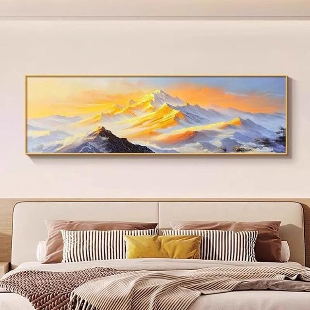 日照金山背靠金山床頭裝飾畫輕奢壁畫客廳沙發背景墻主臥臥室掛畫