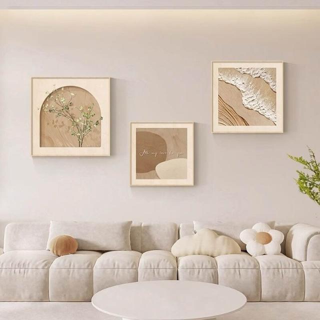 奶油風餐廳裝飾畫組合北歐風客廳餐桌墻面掛畫原木風臥室床頭壁畫