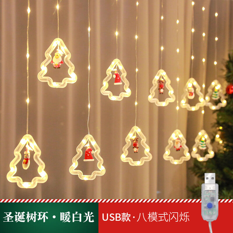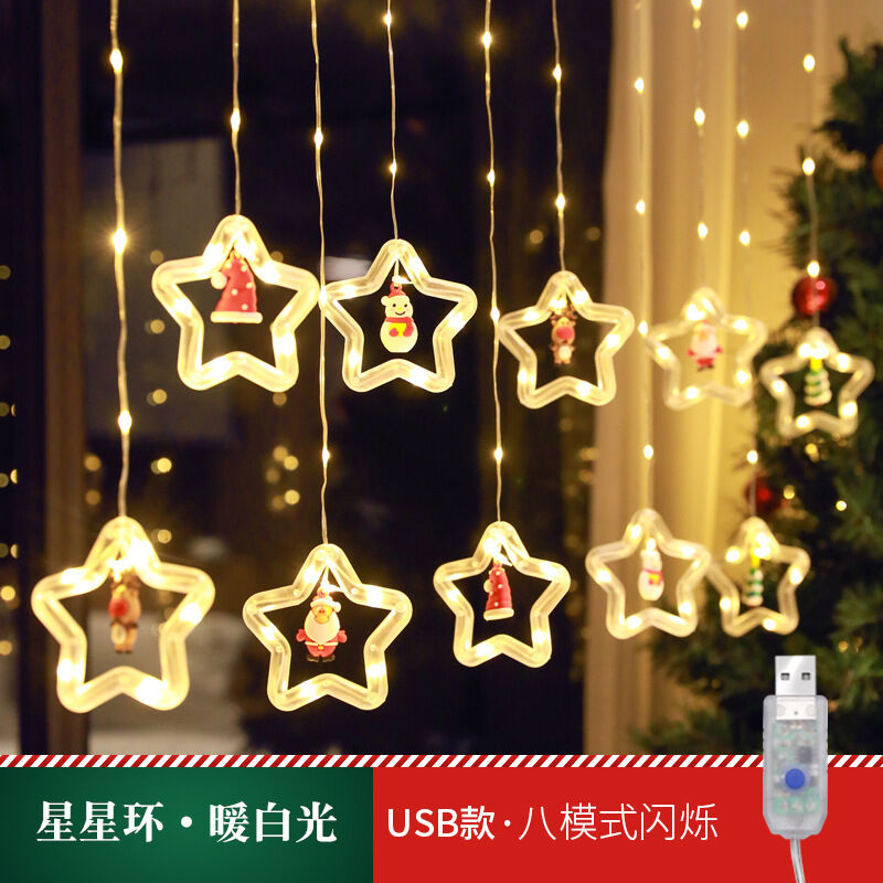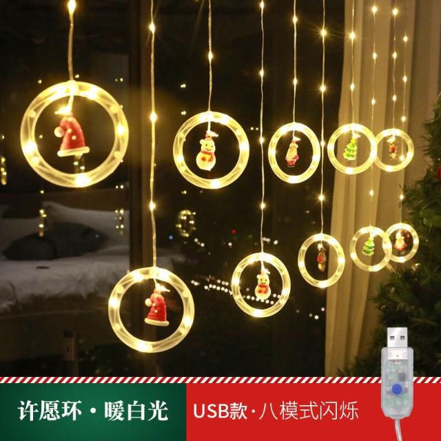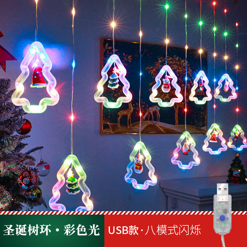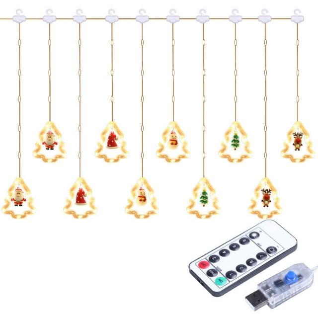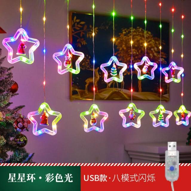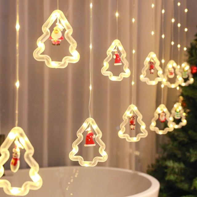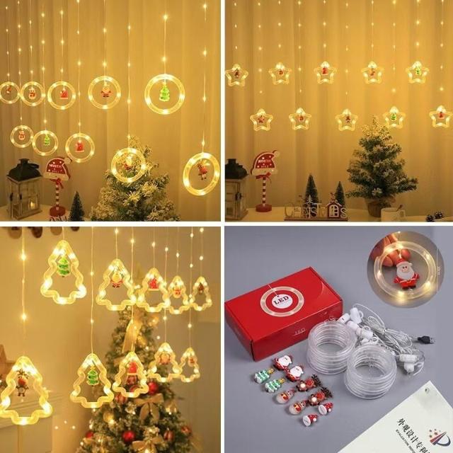 跨境新品聖誕節燈串聖誕卡通造型窗簾燈LED彩燈房間櫥窗裝飾