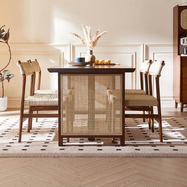 北歐實木餐桌家用客廳長方形飯桌簡約現代日式民宿橡木餐桌椅組合