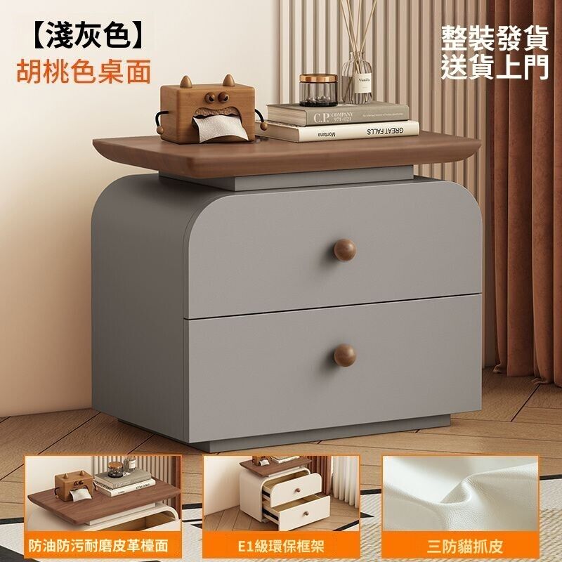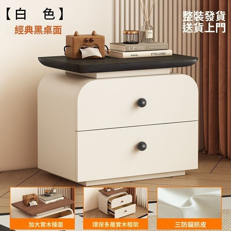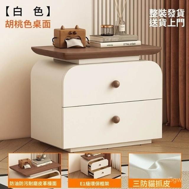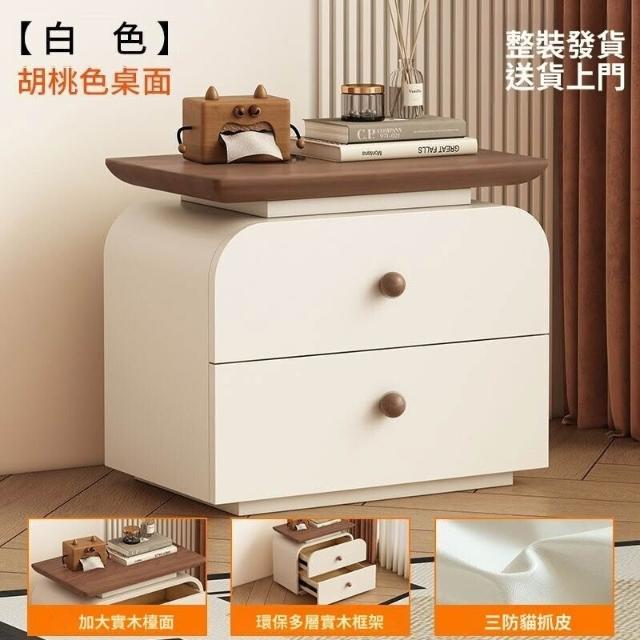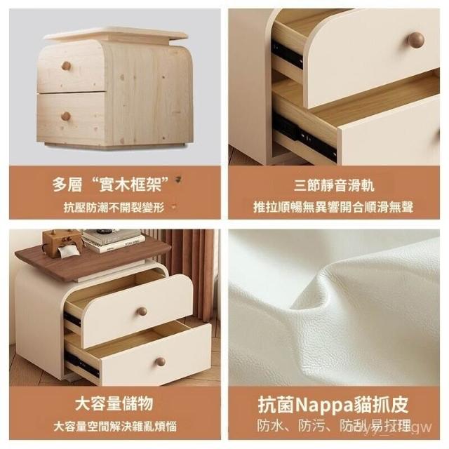 優選品質免安裝實木床頭櫃中古新款小型家用臥室中古奶油風簡約現代收納櫃 R9WD 0