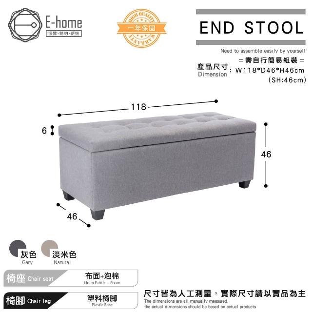 E-homeVed維德拉扣布面收納長方凳-幅118cm 2色可選穿鞋椅 椅凳 玄關 床尾椅