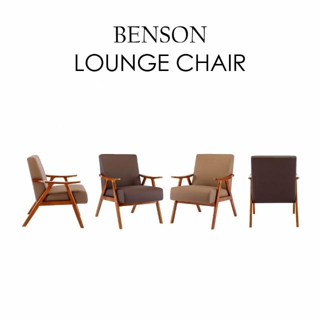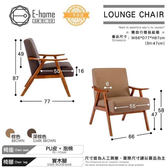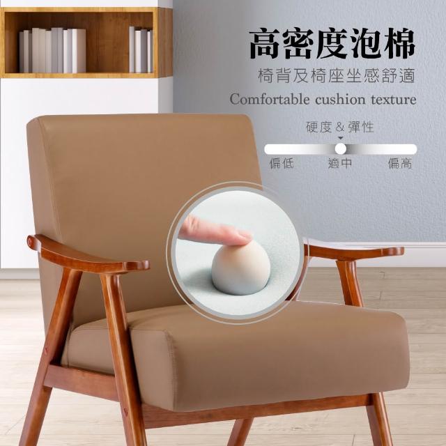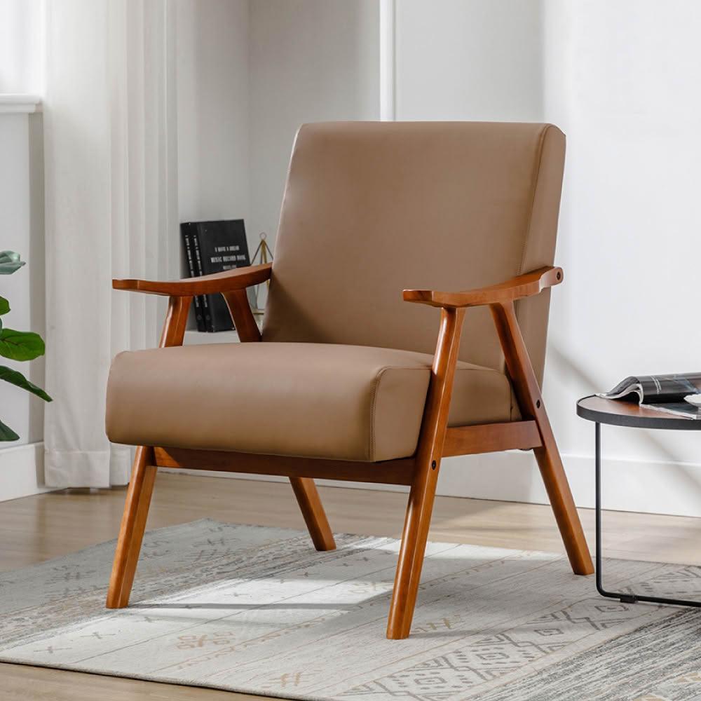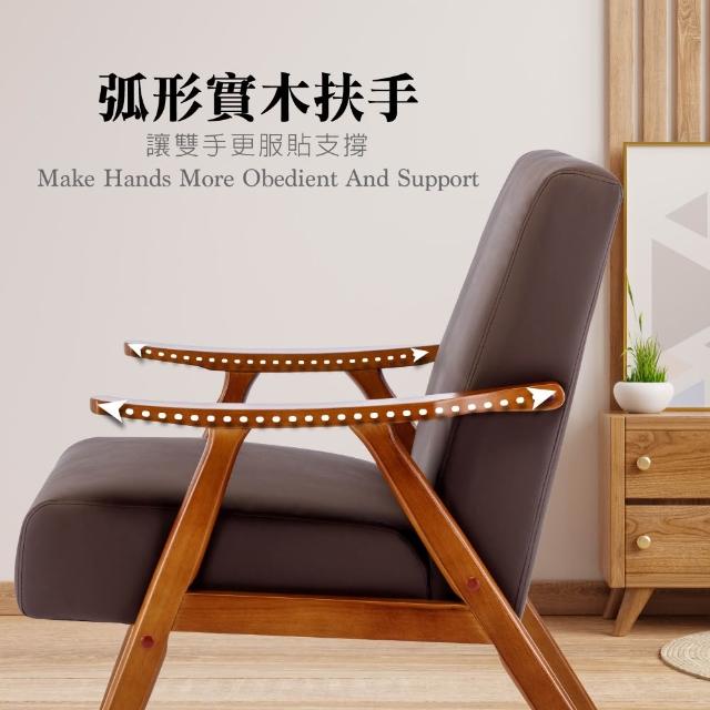 E-homeBenson班森PU面厚感造型實木架休閒椅 2色可選休閒椅 單人沙發 美甲