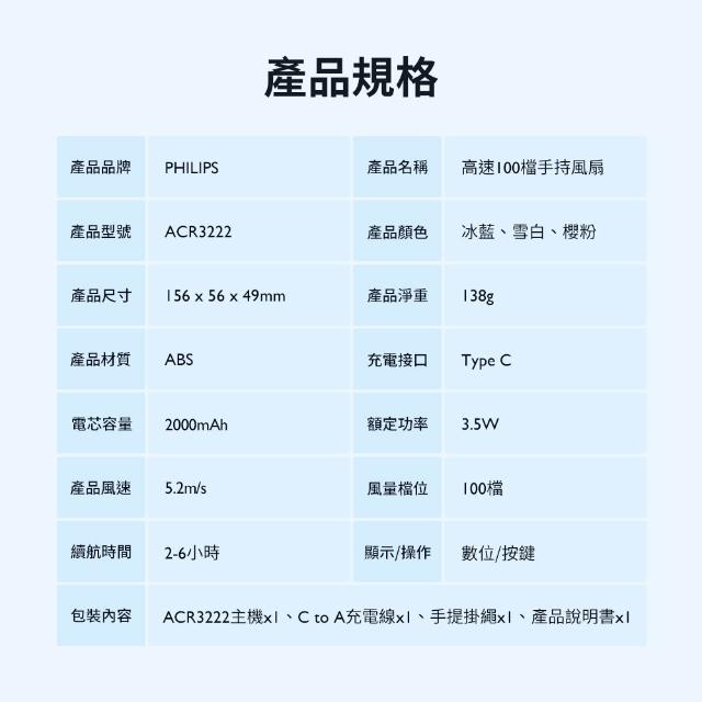 Philips 飛利浦PHILIPS ACR3222PPF 飛利浦 高速100檔手持風扇 風扇 涼風扇 冷風扇-霞光粉