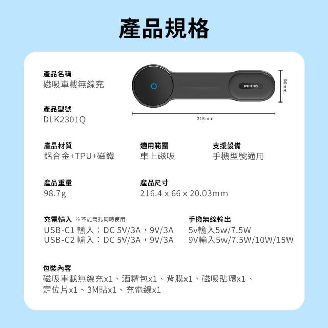 Philips 飛利浦PHILIPS 手機支架 DLK2301Q 車載磁吸 無線充支架 充電支架 車用支架 充電架