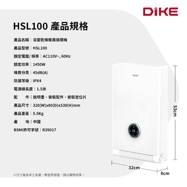 DIKE【冬季智選】浴室乾燥暖風循環機 HSL100 浴室暖風機 PTC陶瓷 電暖器 暖風機 電暖器 暖氣機 防潑水