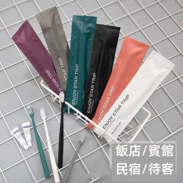 LUHO 小旅禾 拋棄式牙刷一次性牙刷牙膏 一次性牙刷組一次性牙刷民宿牙刷民宿備品超細軟毛 獨立包裝 莫蘭迪色系