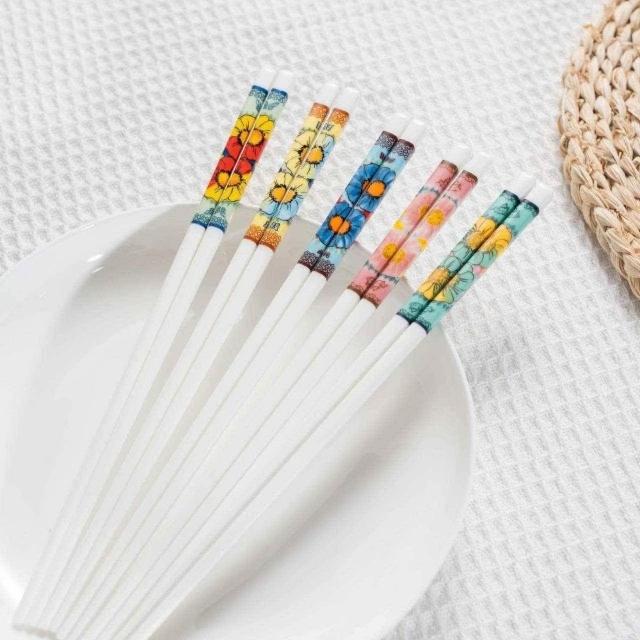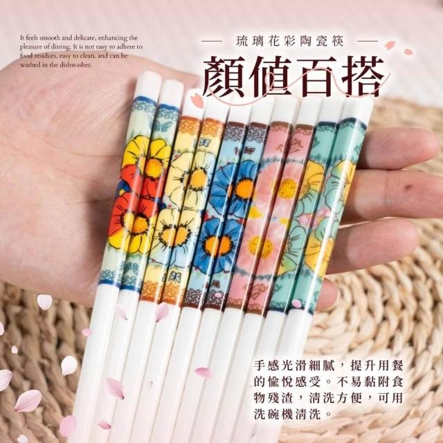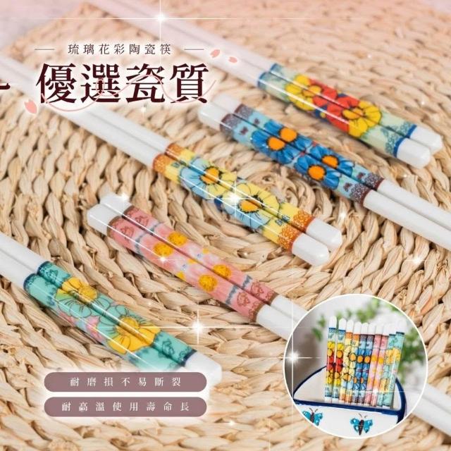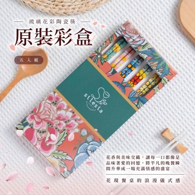波蘭風復古琉璃花彩陶瓷筷子_禮盒5雙組(餐具 筷子 碗筷 陶瓷餐具)