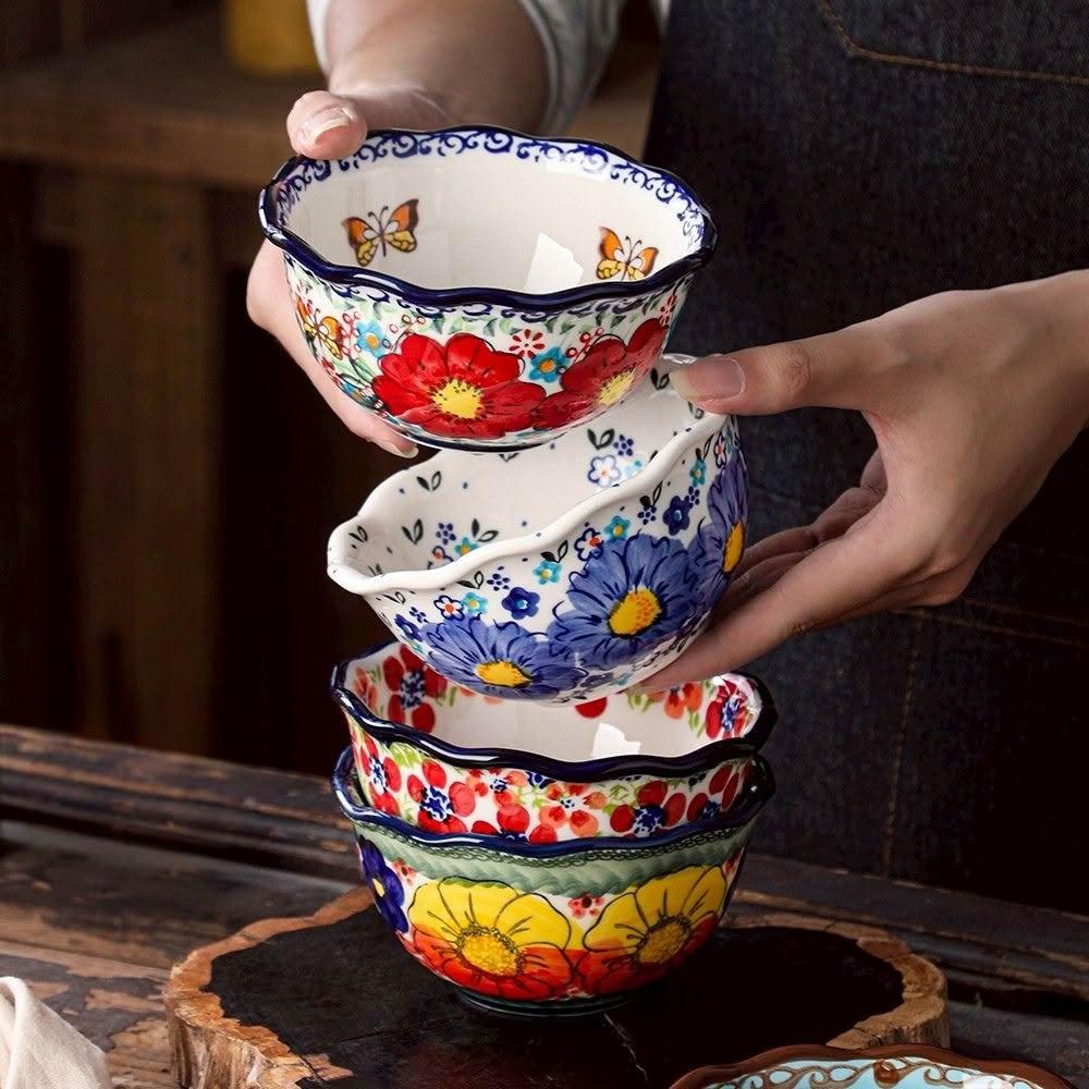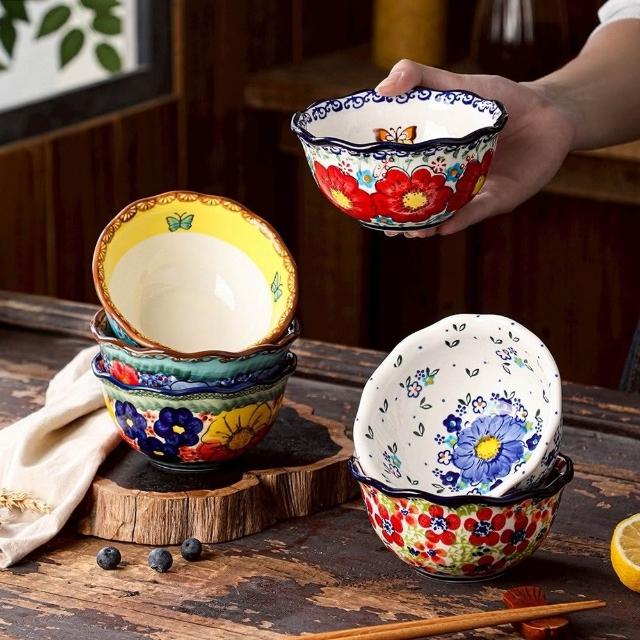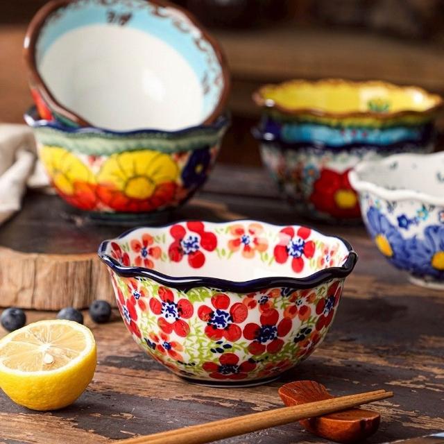 波蘭風花邊碗 陶瓷碗 飯碗 甜品碗 手繪碗 飯碗