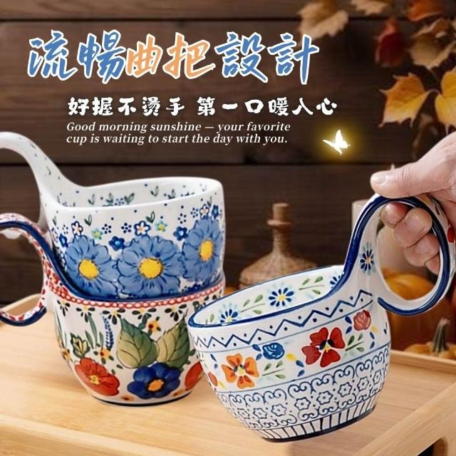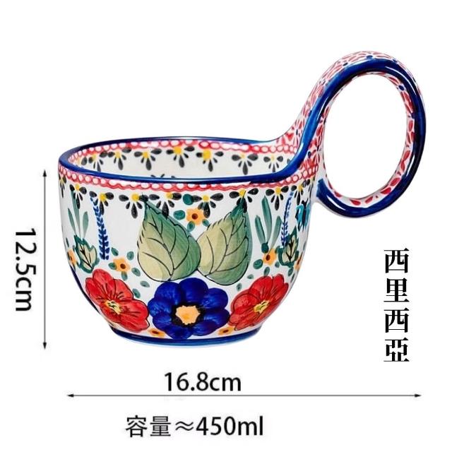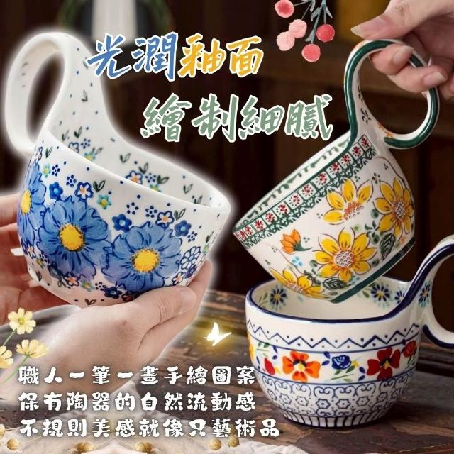 西里西亞波蘭風陶瓷曲把杯 陶瓷餐具 陶瓷杯 馬克杯 咖啡杯 燕麥杯 早餐杯