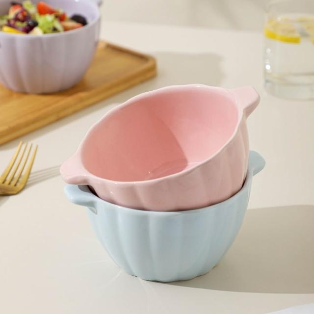 馬卡龍雙耳碗 陶瓷烤碗 雙耳水果碗 冰淇淋碗 南瓜碗 甜點碗 陶瓷碗 優格碗 燕麥碗 沙拉碗 點心碗