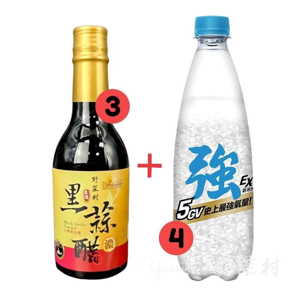 野菜村 黑蒜醋夏日限定組合- 黑蒜醋3瓶+強氣泡水4瓶