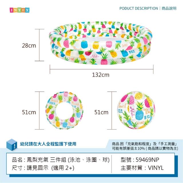 INTEX鳳梨圖案三件組 59469NP *2入 泳池 泳圈 充氣球