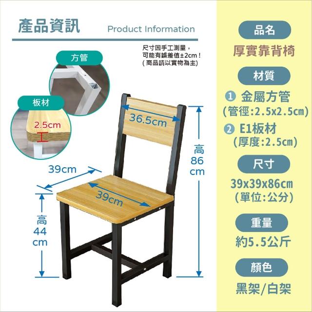 VENCEDOR2.5公分厚實木板耐用實木靠背椅 一入 椅子 餐桌椅 補習椅
