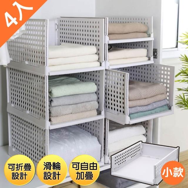 VENCEDOR折疊抽取式收納框 小矮款*4入組 可疊加 抽屜式收納筐 儲物置物