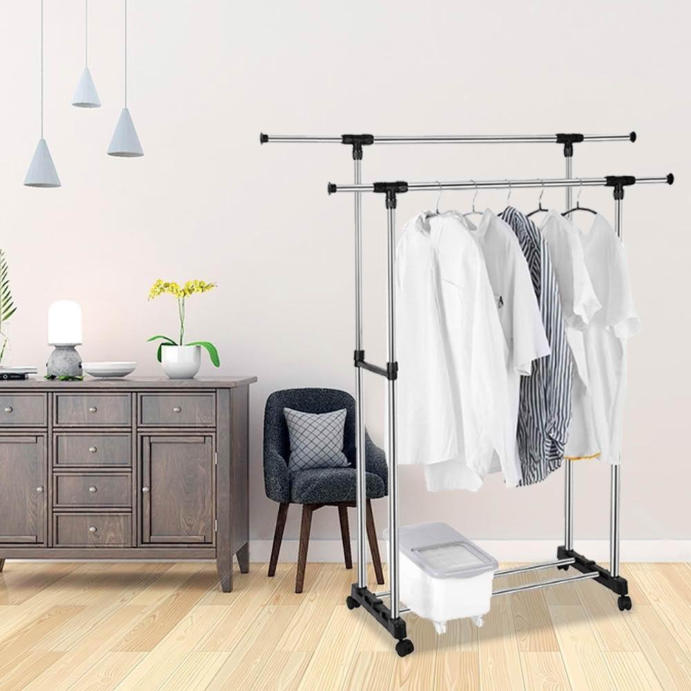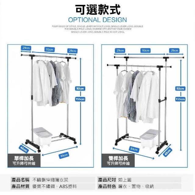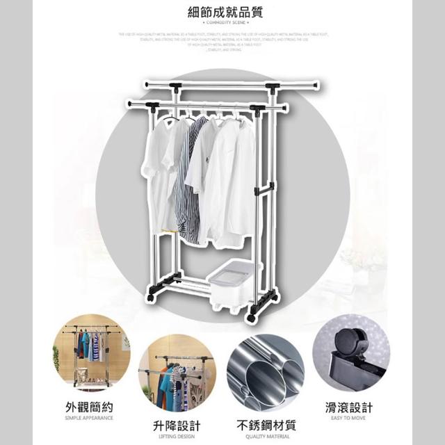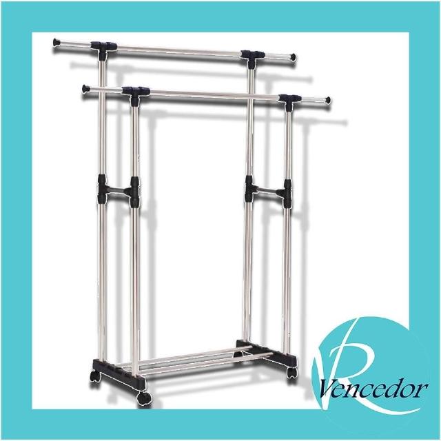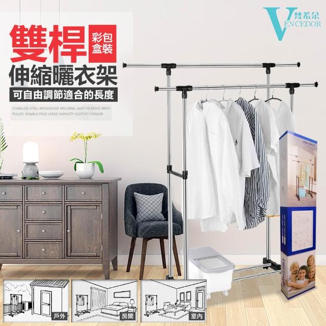VENCEDOR不鏽鋼伸縮曬衣架附輪 雙桿*1入 防滑剎車輪防風掛扣設計 掛衣架 吊衣桿