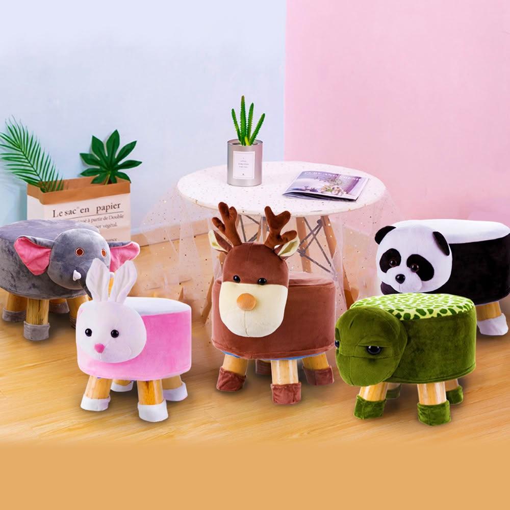 VENCEDOR可愛動物造型實木小圓凳 一入 椅子 布藝實木腿椅 客廳矮凳