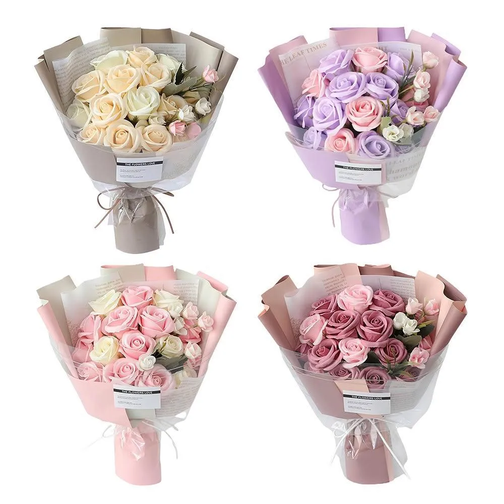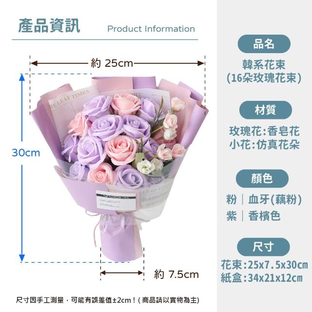 VENCEDOR韓系16朵香皂花束附提袋及小卡 一入 玫瑰花禮物 情人送禮