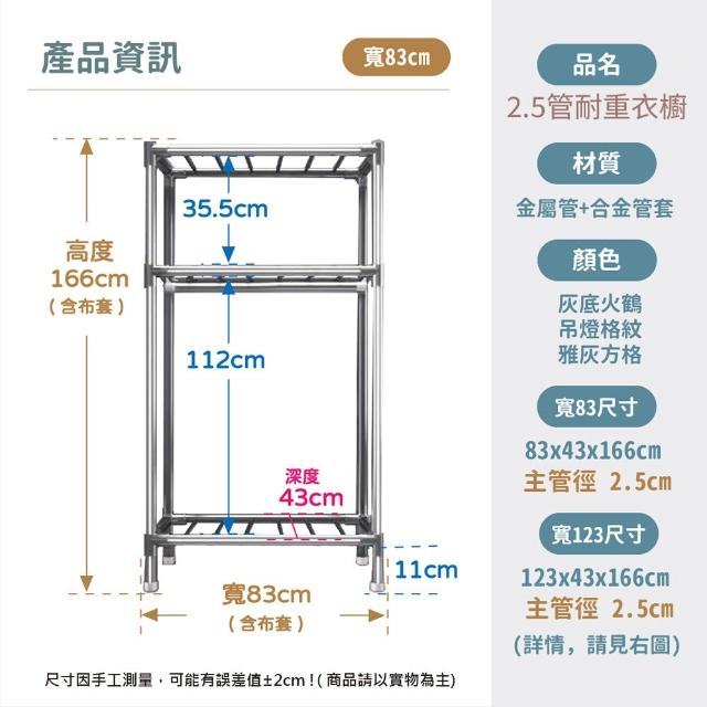 VENCEDOR寬83公分2.5管徑簡易布衣櫥 一入 合金管套款 門簾拉鍊側口袋 DIY