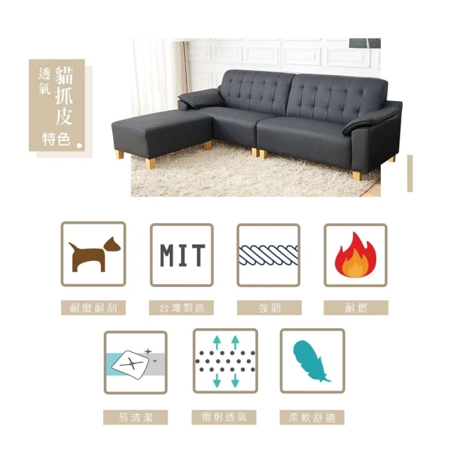 AHOUSE艾利L型貓抓皮沙發-台灣製/二年保固/免運費/免組裝/可訂製
