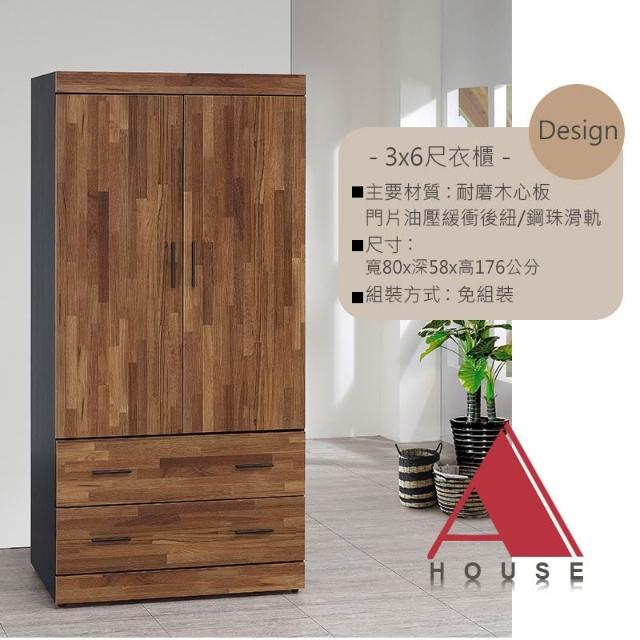 AHOUSE工業風柚木集成材耐磨3x6尺木心板衣櫃-台灣製/免組裝/免運費