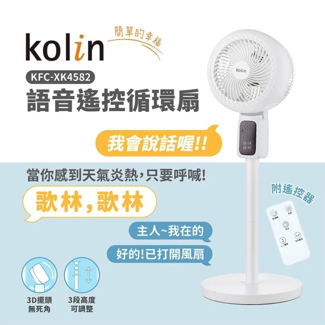 Kolin 歌林Kolin 歌林AI智能時代語音遙控循環扇KFC-XK4582(上下/左右/3D擺頭)