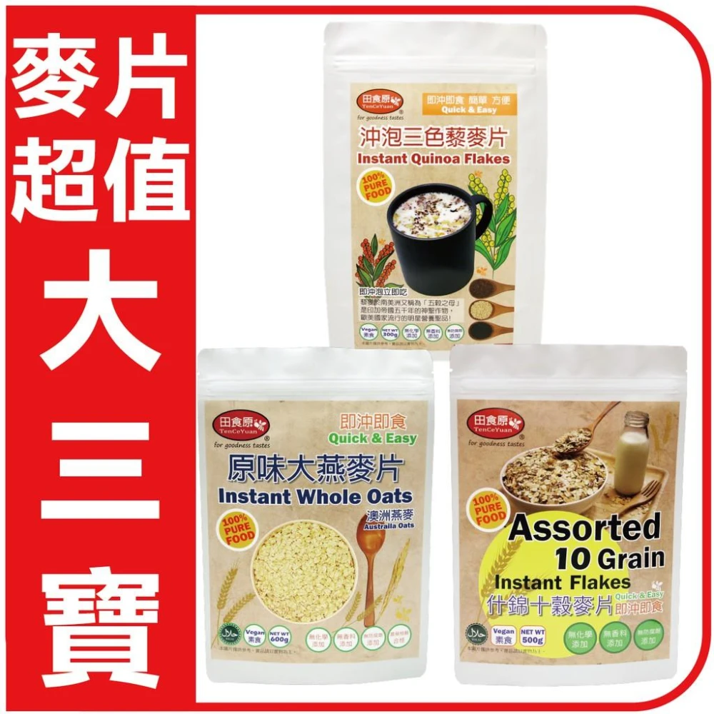 田食原麥片超值大三寶-1400gx1包(即沖即食 燕麥片 十穀麥片 三色藜麥片 減醣 健身餐 早餐 營養 素食)