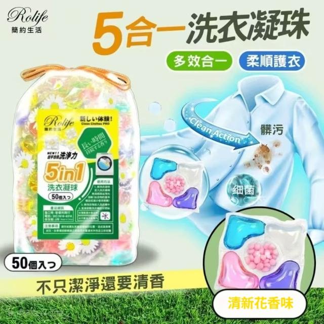五合一洗衣球 袋裝50顆 洗衣凝珠 留香珠 香氛持久留香去汙護色 洗衣精 洗衣粉 洗衣膠球 洗衣凝珠 濃縮洗衣液