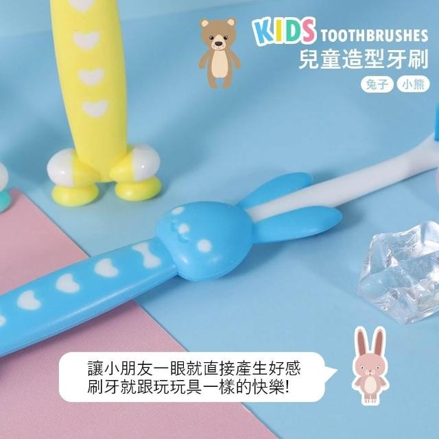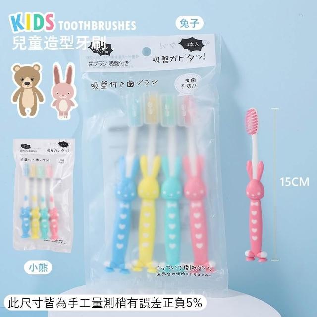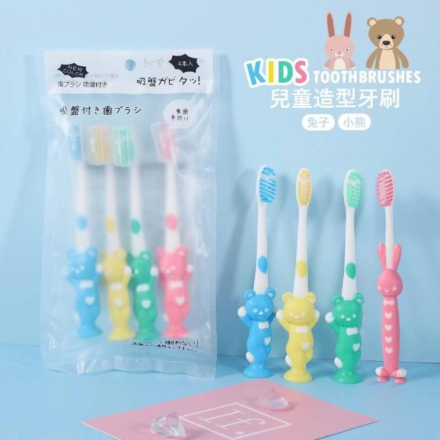 兒童牙刷4入1組 卡通吸盤牙刷 可愛牙刷 兔子牙刷 小熊牙刷 環保裝 兒童牙刷 牙刷