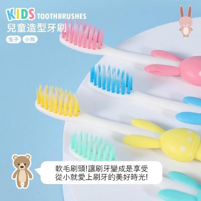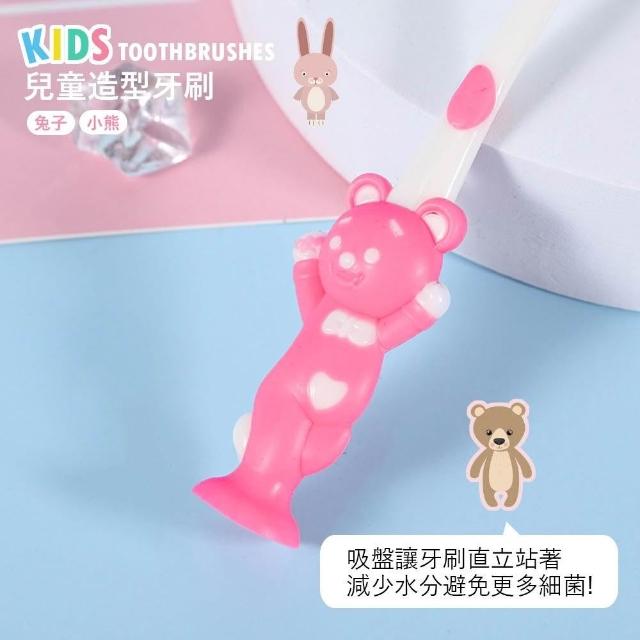 兒童牙刷4入1組 卡通吸盤牙刷 可愛牙刷 兔子牙刷 小熊牙刷 環保裝 兒童牙刷 牙刷