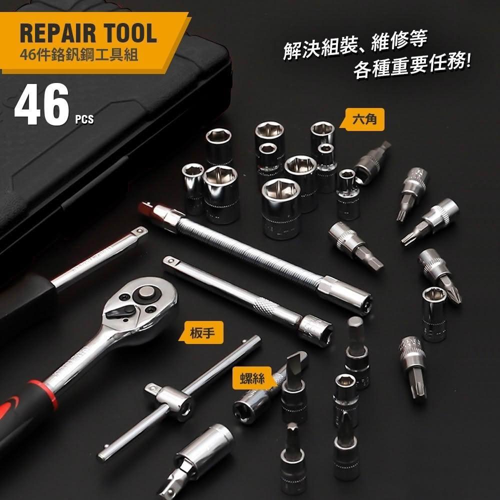 46件套工具箱 2分扳手套筒 棘輪扳手 專業工具組 六角套筒 六角扳手 機車工具 螺絲起子