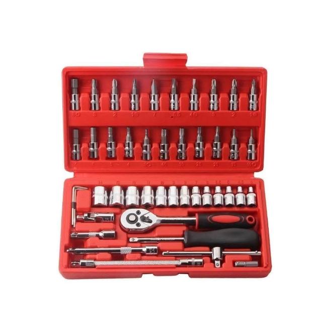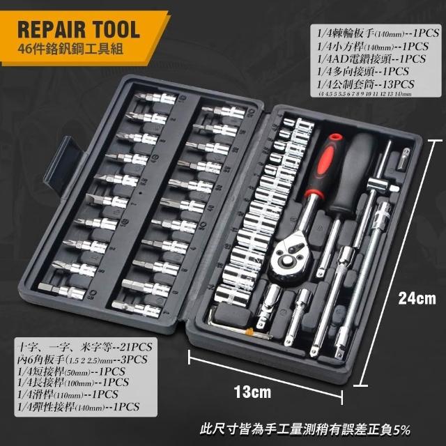 46件套工具箱 2分扳手套筒 棘輪扳手 專業工具組 六角套筒 六角扳手 機車工具 螺絲起子