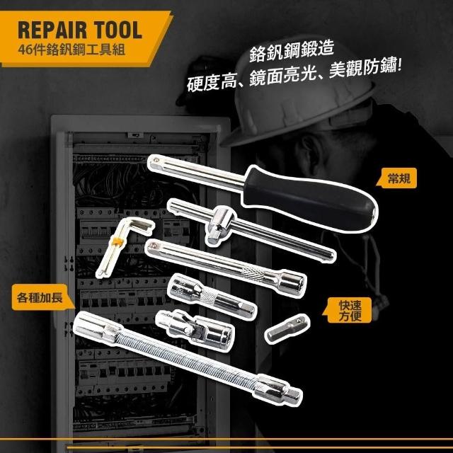 46件套工具箱 2分扳手套筒 棘輪扳手 專業工具組 六角套筒 六角扳手 機車工具 螺絲起子