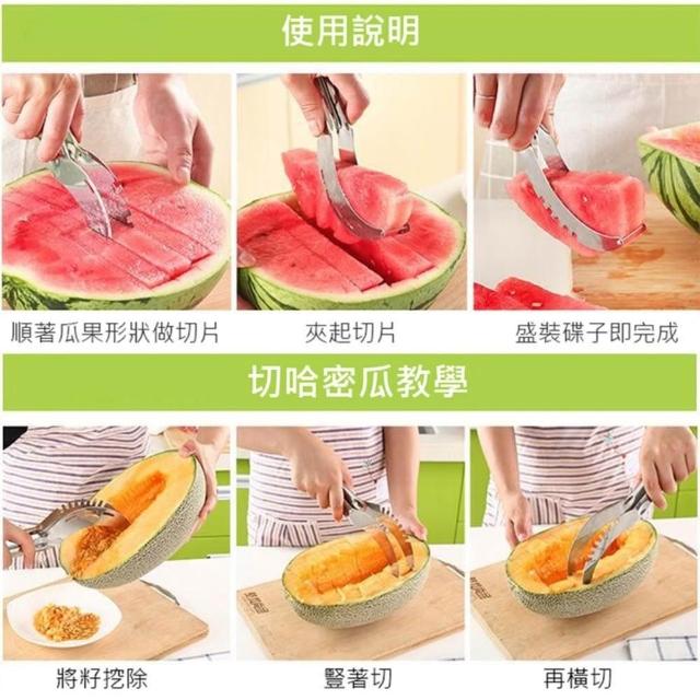 不鏽鋼西瓜切夾合器 西瓜夾 西瓜切合夾 切西瓜神器 西瓜分切器 創意廚房小物 不鏽鋼水果刀 切水果神器
